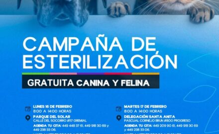 Se realizará el lunes 16 y martes 17 de febrero en la colonia Gremial y la colonia Progreso, respectivamente María Teresa Rendón Esquivel, coordinadora general de Salud del Municipio de Aguascalientes informa que se llevarán a cabo nuevas jornadas de esterilización en...