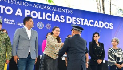 TERE JIMÉNEZ RECONOCE A POLICÍAS QUE BLINDAN LA PAZ EN AGUASCALIENTES
