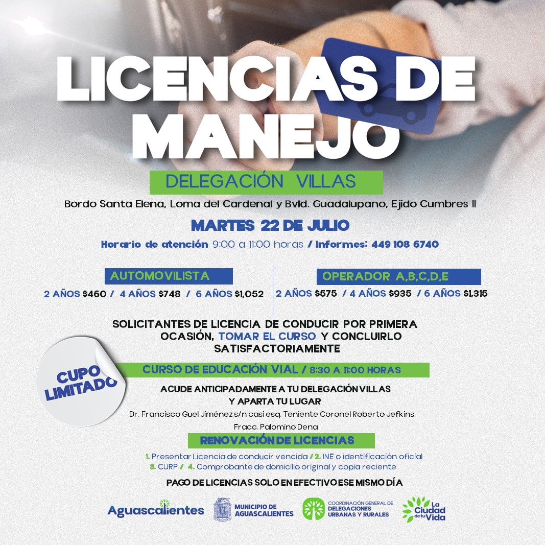 JORNADA DE RENOVACIÓN DE LICENCIAS DE MANEJO LLEGARÁ A LA DELEGACIÓN VILLAS
