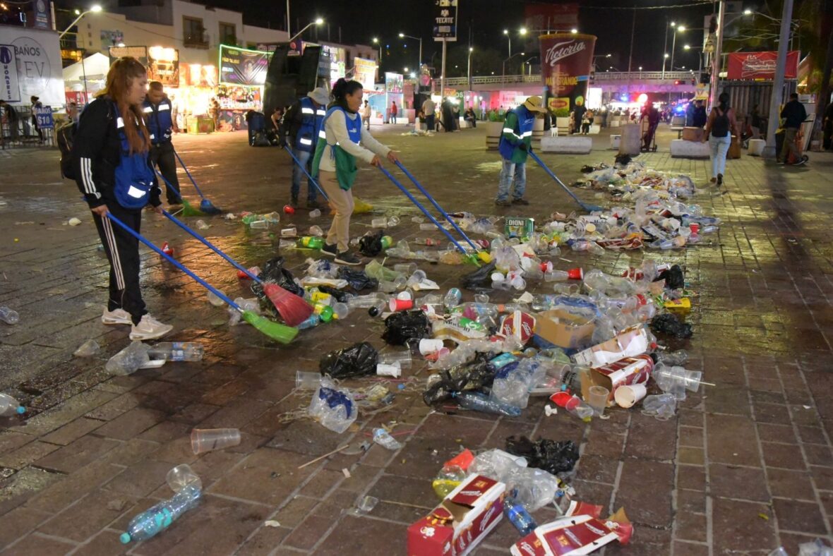 Desde la madrugada, personal de la Dirección de Limpia y Aseo Público y voluntarios de Servicio Comunitario, llevan a cabo una intensa jornada de limpieza en todo el perímetro ferial. Estas labores se apoyan con el uso de maquinaria especializada para el barrido, lavado y recolección de residuos.