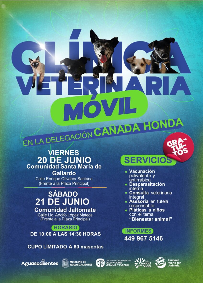 En junio la Clínica Veterinaria Móvil continúa recorriendo la Delegación de Cañada Honda para brindar atención gratuita a perros y gatos con la finalidad de garantizar su salud y al mismo tiempo fomentar en la sociedad el sentido de responsabilidad por los animales, evitar el abandono y el maltrato.