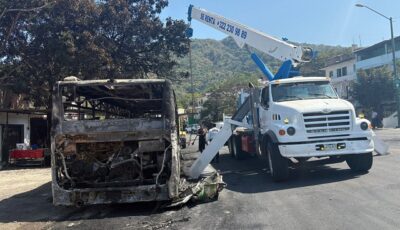 Asimismo, el presidente municipal se trasladó a otros puntos como la colonia 5 de Diciembre, donde continúan los trabajos para retirar unidades incendiadas que obstruían la circulación.