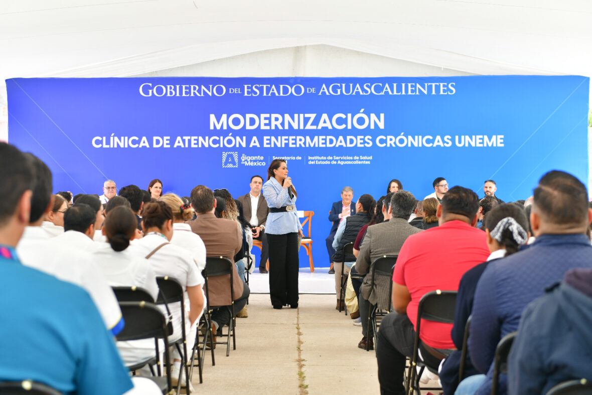 La gobernadora de Aguascalientes, Tere Jiménez, inauguró las obras de modernización que se realizaron en la Unidad de Especialidades Médicas para el Tratamiento de Enfermedades Crónicas (Uneme EC) de Rincón de Romos, en beneficio de más de 50 mil usuarios.