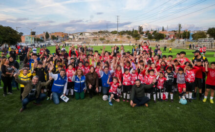 Impulsamos del deporte con obras de calidad como esta cancha de pasto sintético de medidas profesionales: Leo Montañez. El presidente municipal, Leo Montañez, encabezó la entrega de la cancha de fútbol con pasto sintético de medidas profesionales, ubicada sobre la Línea Verde a...