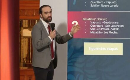 Anuncia el Gobierno de la República el inicio de los estudios para completar la construcción del Sistema Ferroviario Nacional, que incluye el tramo de Irapuato a Guadalajara, como explica el titular de la Agencia Reguladora de Transporte Ferroviario, Andrés Lajou...