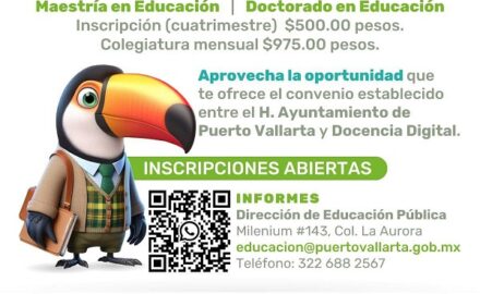 º La Dirección de Educación Pública abrió de nueva cuenta inscripciones para estudios superiores en modalidad en línea, con opciones de titulación flexibles y colegiaturas económicas   Wendy Díaz Puerto Vallarta   Puerto Vallarta continúa ampliando sus oportunidades de...