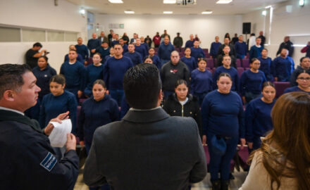 Con estas acciones se refuerza la estrategia de seguridad pública en el municipio capital Este lunes, el presidente municipal, Leo Montañez visitó las instalaciones del Complejo de Seguridad Pública Municipal para dar la bienvenida a las y los 46 nuevos cadetes que forman...