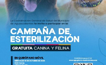Se brindarán servicios de esterilización, vacunación y desparasitación gratuitas el próximo 19 de noviembre La coordinadora general de Salud del Municipio de Aguascalientes, María Teresa Rendón, anuncia nueva fecha para esterilizaciones, vacunación antirrábica y desparasitación...