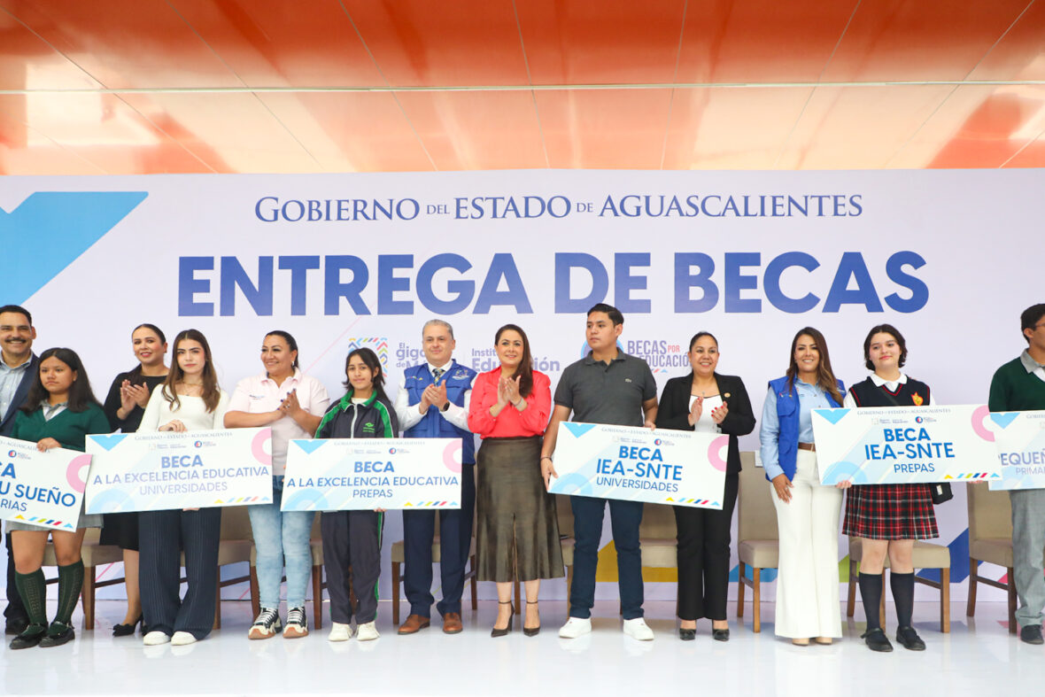La gobernadora de Aguascalientes, Tere Jiménez, dio inicio a la entrega de becas a estudiantes de primaria, secundaria, bachillerato y nivel superior correspondientes al primer semestre de 2025.