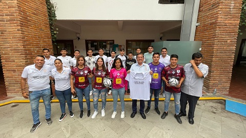 El alcalde Luis Alberto Michel, con los jovencitos y jovencitas vallartenses que estarán presentes en la Copa jalisco
