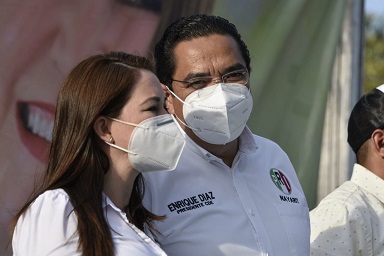 Enrique Díaz a lado de la candidata a la gubernatura del estado, Gloria Nuñez